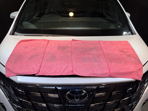 新車で尚且つ洗車をした後にも関わらず、特殊溶剤に反応してこのように不純物が浮き上がってきましたので・・・
