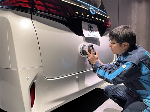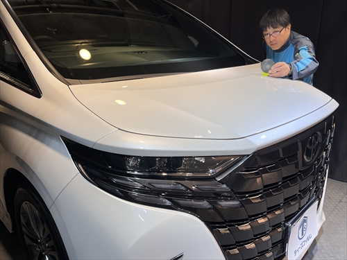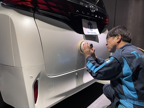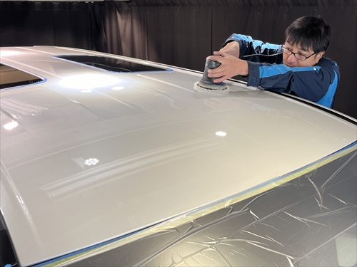 いつもの研磨処理で新車の塗装を壊すことなくツヤ・光沢をしっかりと引き出していきます。