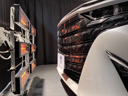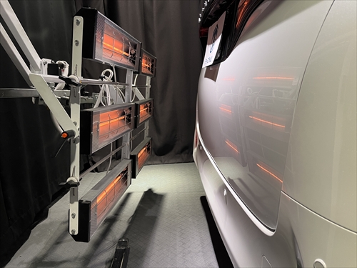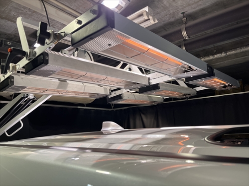 コーティング施工後は、カーボンヒーターを使用した乾燥処理をしていきます。