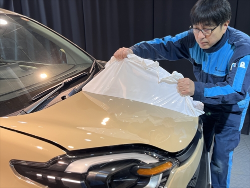 塗装強化処理が終わったら下地処理までが終了し、ここからやっとコーティング施工に取り掛かります。