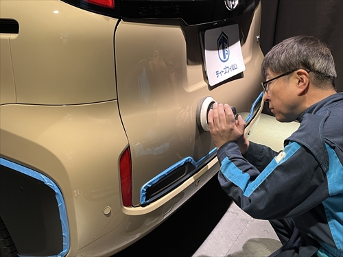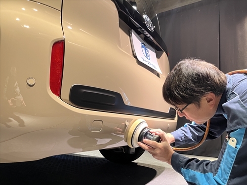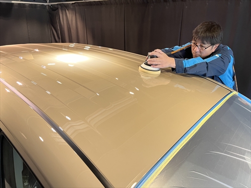 いつもの研磨処理で新車の塗装を壊すことなくツヤ・光沢をしっかりと引き出していきます。