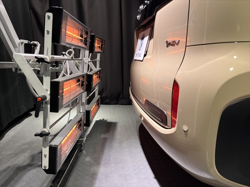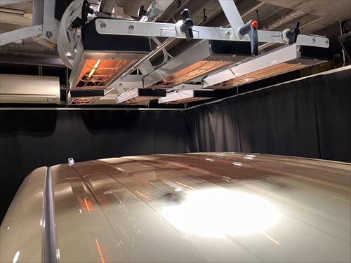 コーティング施工後は、カーボンヒーターを使用した乾燥処理をしていきます。