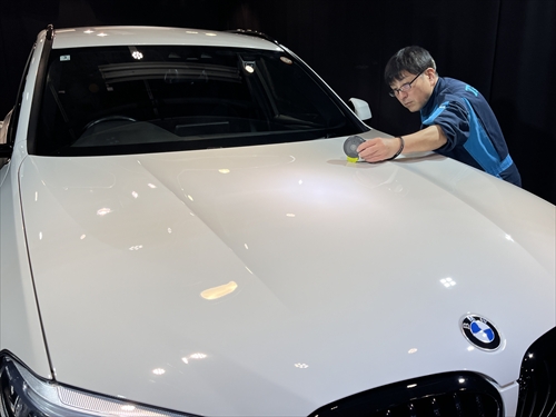 この研磨工法でボディ全体を磨いたら下地処理までが終了し、続いてコーティング施工に取り掛かります。
