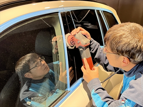 塗装に極力負担を掛けない、いつもの研磨工法でツヤ・光沢を引き出していきます。
