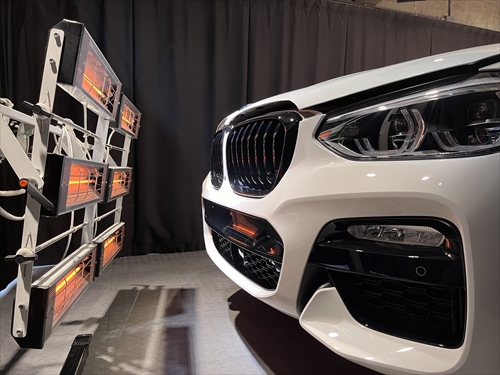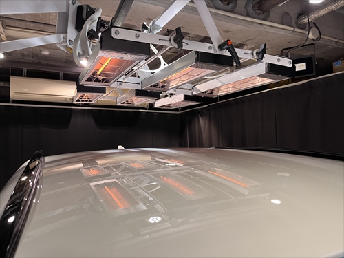 コーティング施工後はカーボンヒーターを使って、1パネル毎温度管理しながら乾燥処理をしていきます。