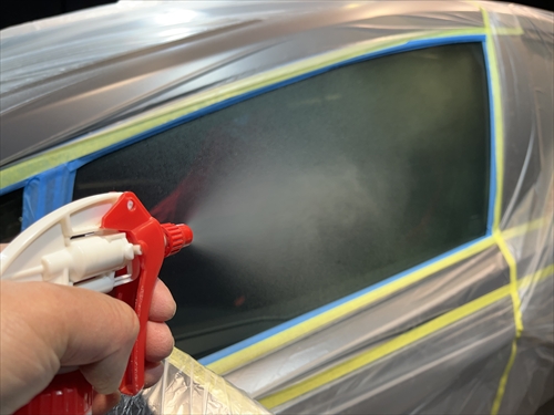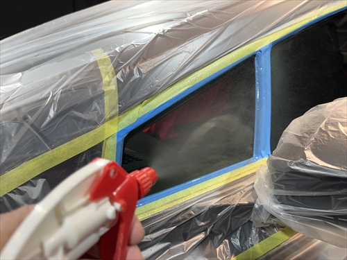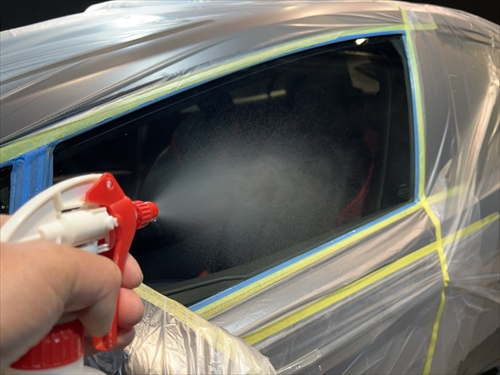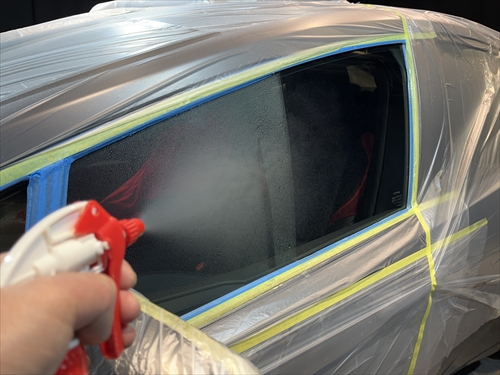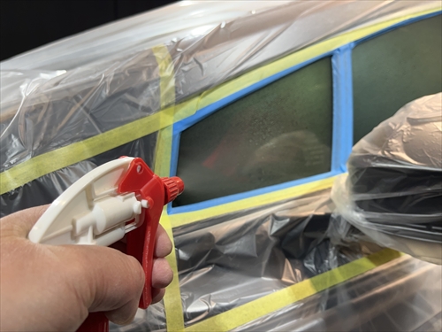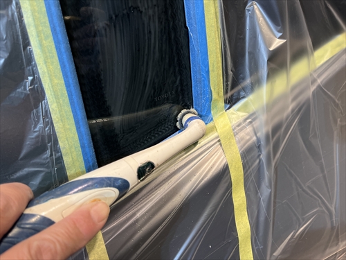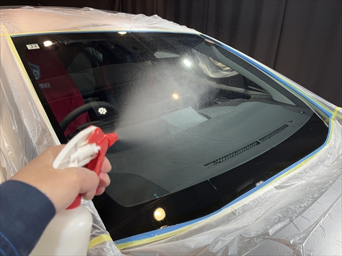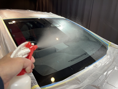ガラス撥水コーティングを施工していきます。