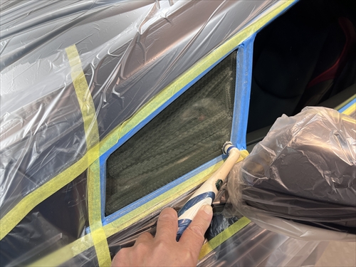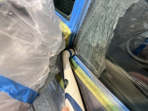 ボディを汚さないように養生したら、早速ガラスの状態をチェックしていきます。