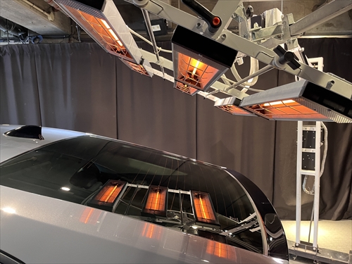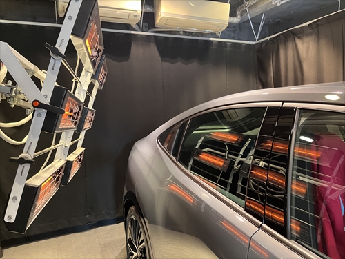 ガラス撥水コーティング施工後は、ヒーター乾燥処理をしていきます。