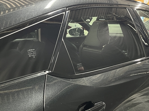 クォーターガラスやリアドアガラスには「断熱スモーク15%」を施工しました。
