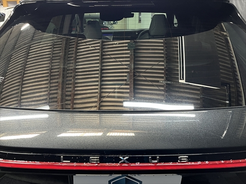 リアガラスに「断熱スモーク3%」を施工していきます。