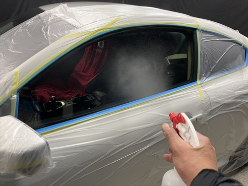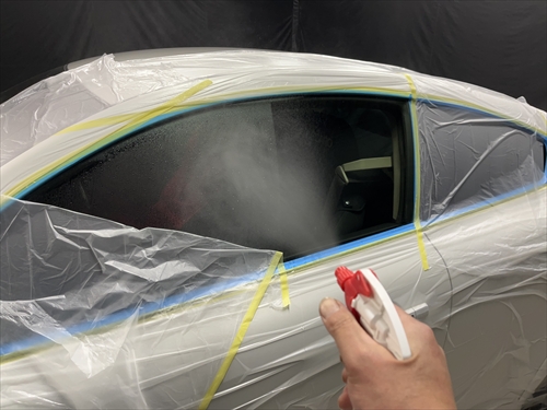 ガラス撥水コーティングを施工していきます。