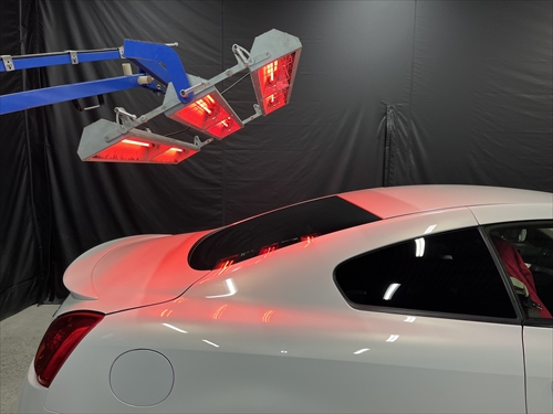 ガラス撥水コーティング施工後は、ヒーター乾燥処理をしていきます。