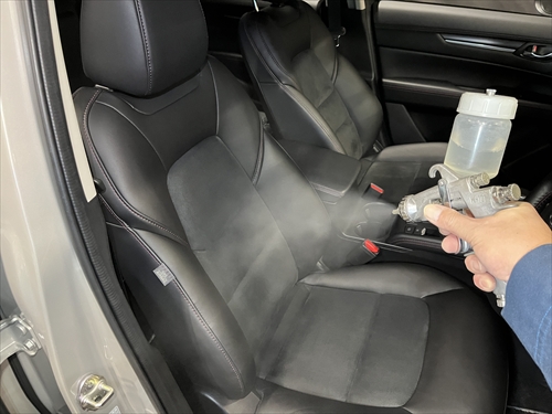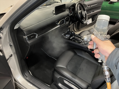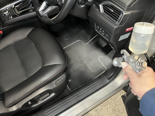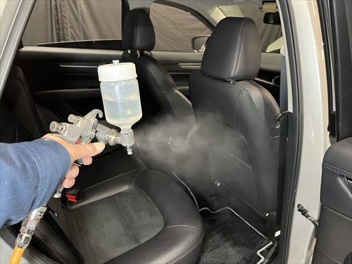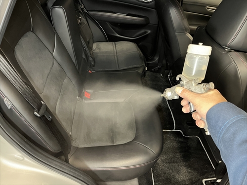 クリーニングが終わったら、消臭剤を部分的ではなく、車内全体に散布していきます。