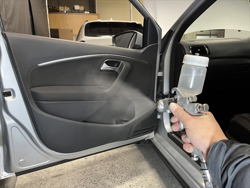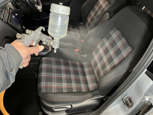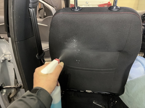 クリーニングが終わったら、消臭剤を部分的ではなく、車内全体に散布していきます。