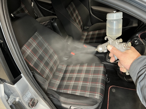 本来であれば車内全体のクリーニングを行った後に散布するのが理想ですが、それでも効果は期待できます。