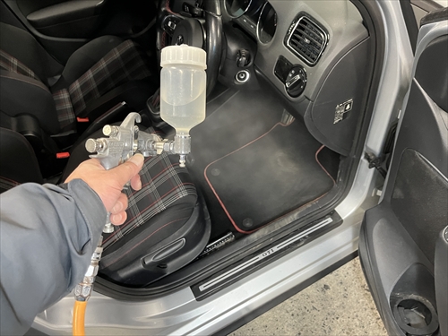 フォルクスワーゲン ポロ GTIの車内クリーニング (食べ物こぼし 助手席シート周り)