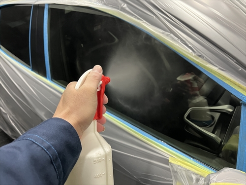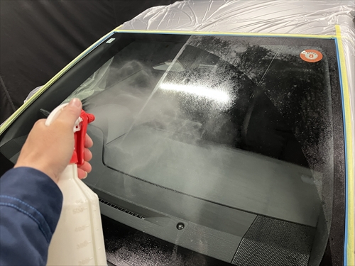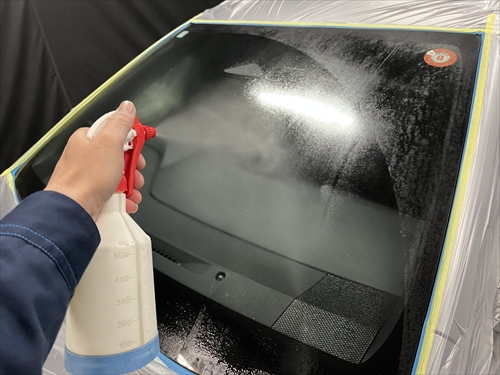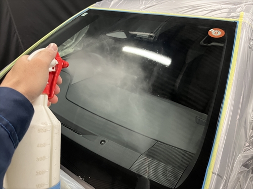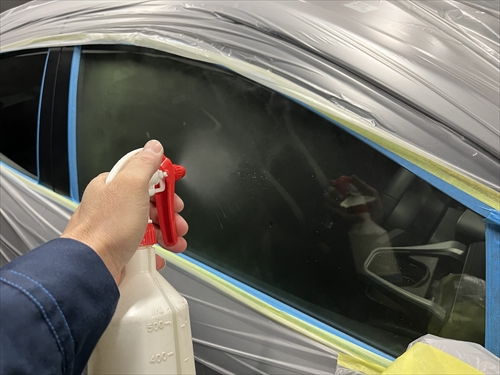 ガラス撥水コーティングを施工していきます。