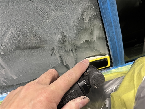 特殊溶剤とサンダーやポリッシャー等の研磨機材を使用してガラスを磨いていきます。