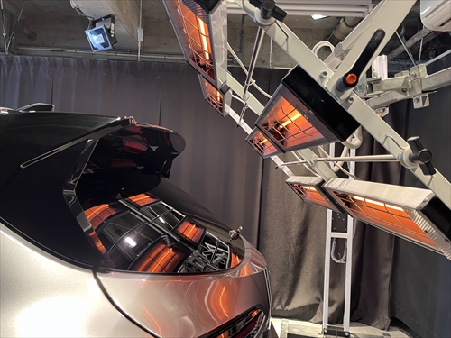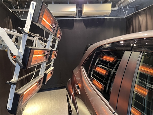 ガラス撥水コーティング施工後は、ヒーター乾燥処理をしていきます。