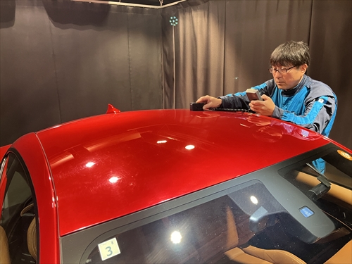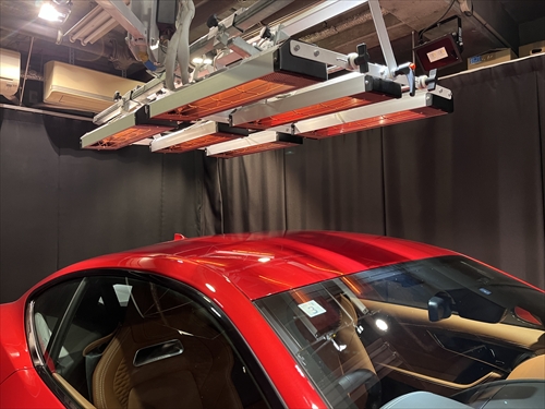 特殊照明を配置したコーティングブース内において、計器類を用いながらボディチェックをしていきます。