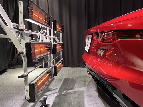 コーティング施工後はヒーターを使って1パネル毎温度管理しながら乾燥処理を施します。