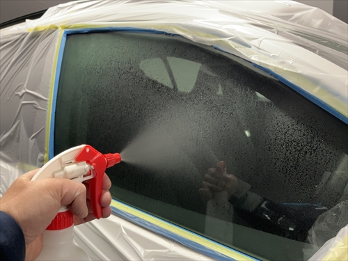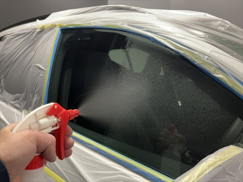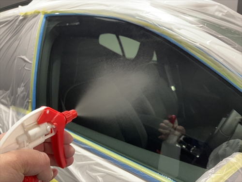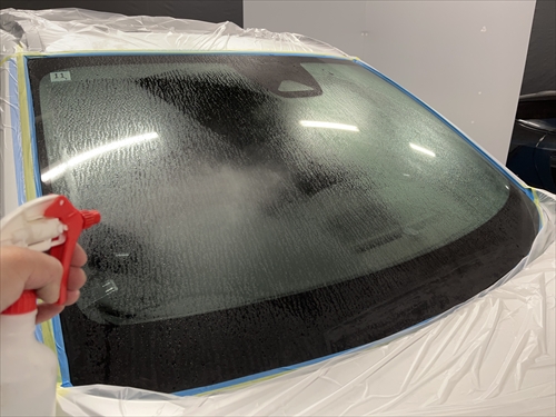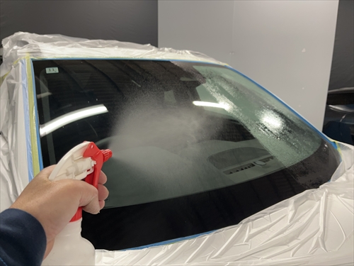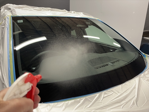 ガラス撥水コーティングを施工していきます。