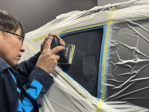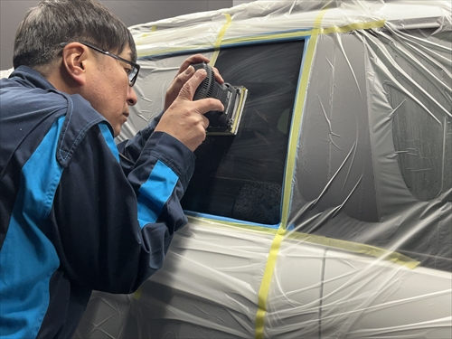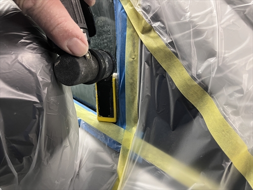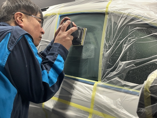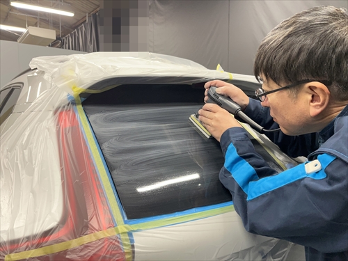 ボディを汚さないように養生したら、早速ガラスの状態をチェックしていきます。