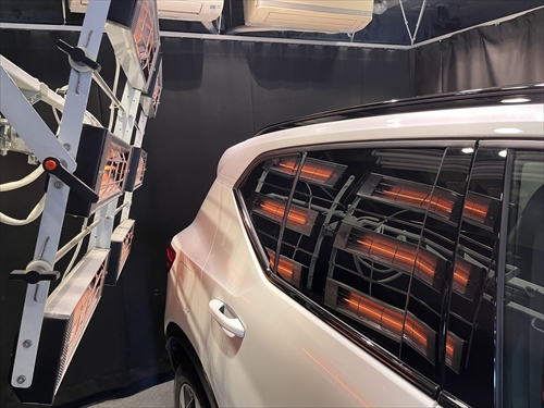 ガラス撥水コーティング施工後は、ヒーター乾燥処理をしていきます。