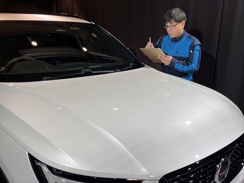 未使用車をご購入されたようですが、厳しい照明設備の下で確認するとこのようなダメージが確認できました。