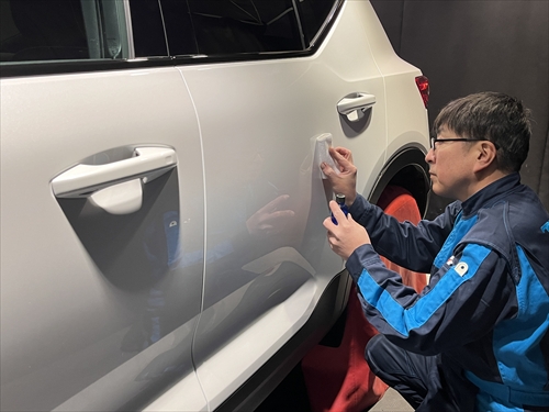 ボディ全体を磨いたら下地処理までが終了し、ここからコーティング施工に取り掛かります。