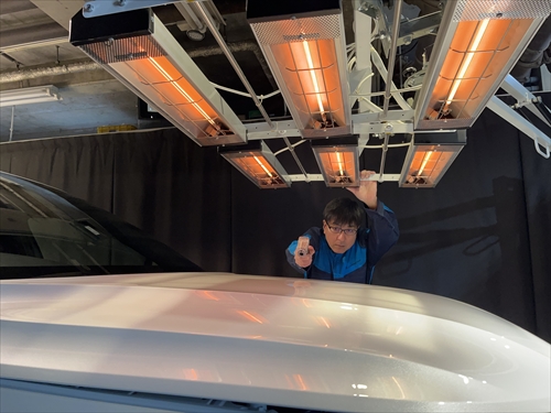 コーティング施工後ヒーターを使って1パネル毎温度管理しながら乾燥処理を施します。