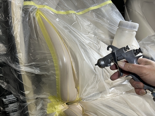 内装リペアの場合、深いシワは残ってしまいますし、ステッチ部分はそのままで塗装による色が付いてしまいます。