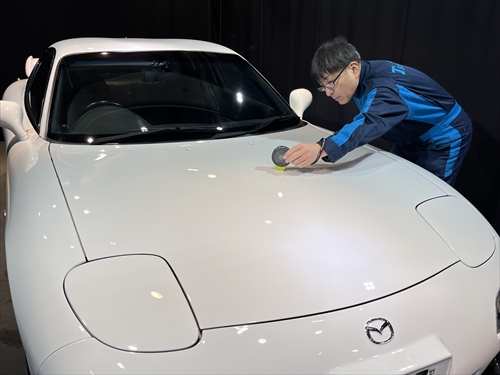 塗装屋さんの磨き跡を含む、ボディ全体のダメージをいつもの研磨工法で磨き直して、塗装のツヤ・光沢をしっかりと引き出していきます。