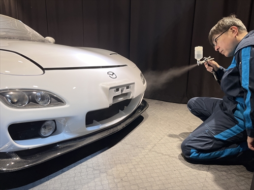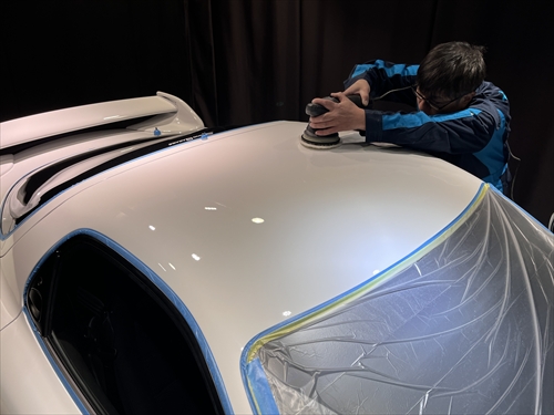 ボディ全体を磨いたら下地処理までが終了し、ここからコーティング施工に取り掛かります。
