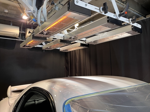 コーティング施工後はヒーターを使って1パネル毎温度管理しながら乾燥処理をしていきます。