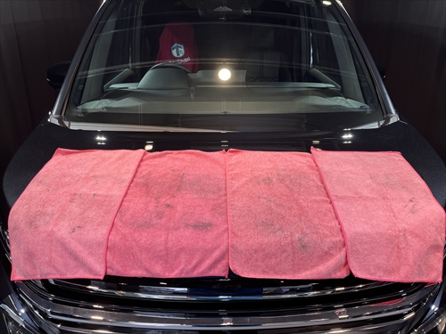 新車で尚且つ洗車をした後にも関わらず、特殊溶剤に反応して不純物が浮き上がってきましたので・・・