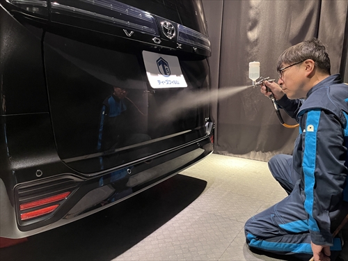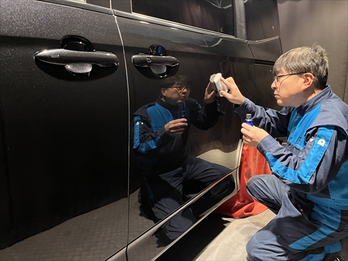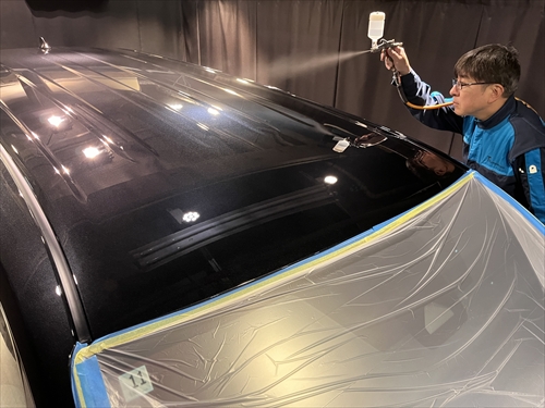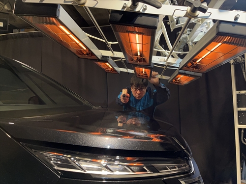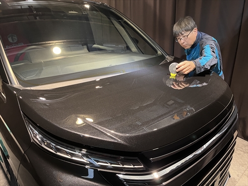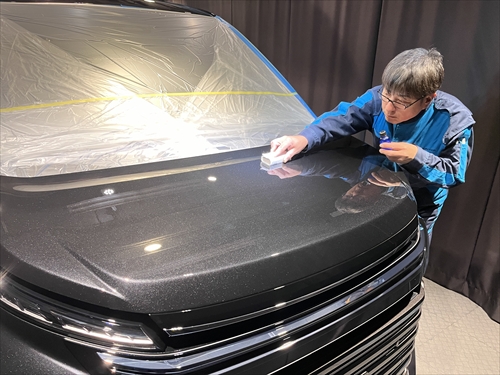ボディ全体を磨いたら下地処理までが終了し、ここからコーティング施工に取り掛かります。