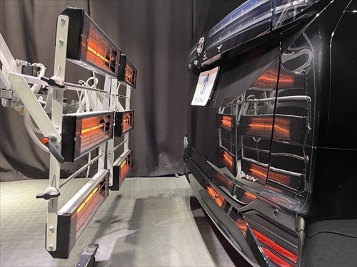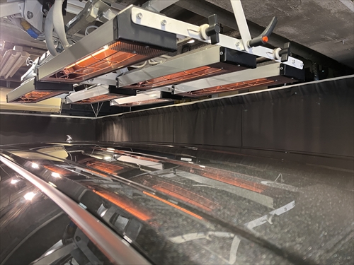 コーティング施工後はヒーターを使って1パネル毎温度管理しながら乾燥処理を施します。