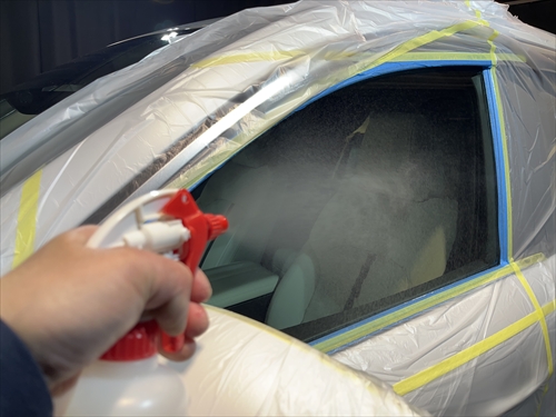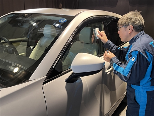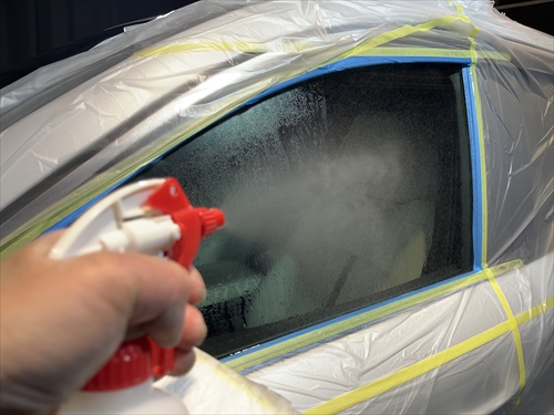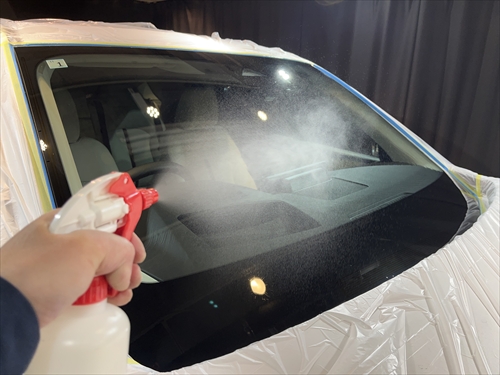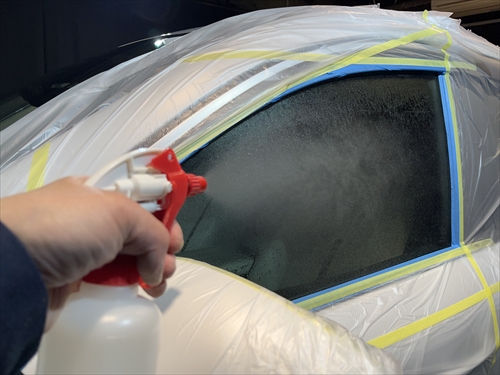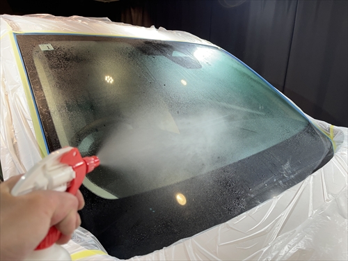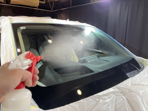 ガラス撥水コーティングを施工していきます。