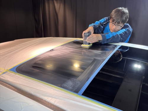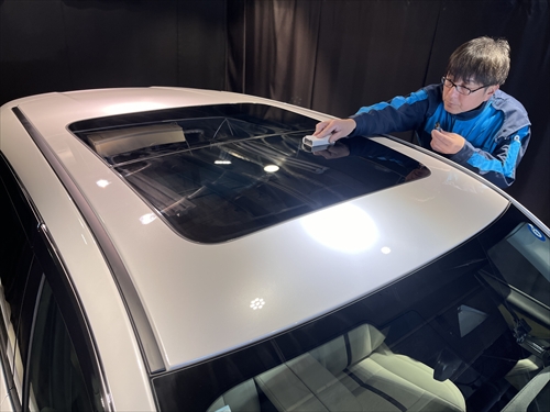 サンルーフ付きのお車にボディのコーティングを施工させていただく場合、ルーフガラスはボディの一部とみなし、ガラス撥水コーティングを施工させていただいています。