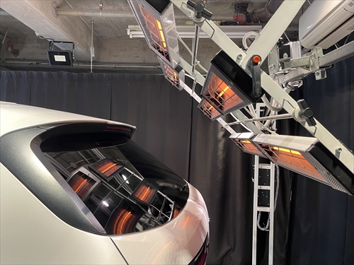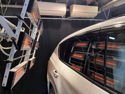 ガラス撥水コーティング施工後は、ヒーター乾燥処理をしていきます。