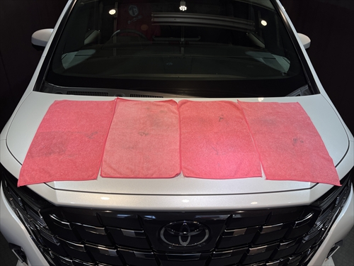 新車で尚且つ洗車をした後にも関わらず、特殊溶剤に反応してかなりの不純物が浮き上がってきましたので・・・