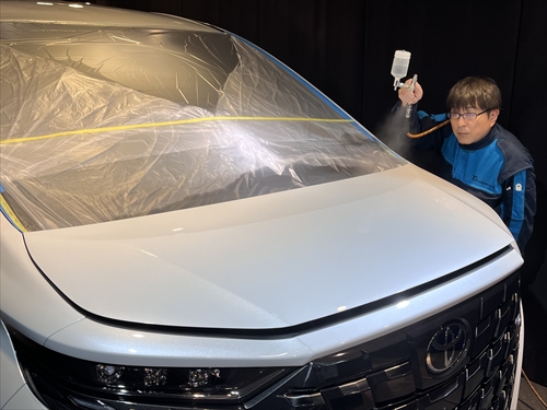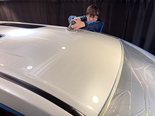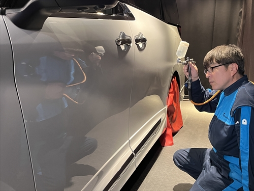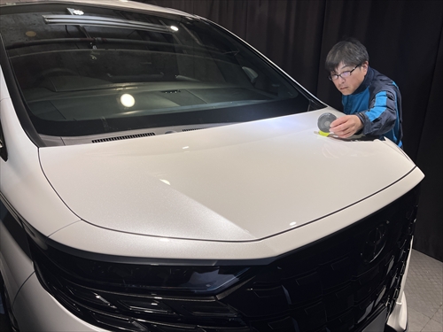 ボディ全体を磨いたら下地処理までが終了し、ここからコーティング施工に取り掛かります。