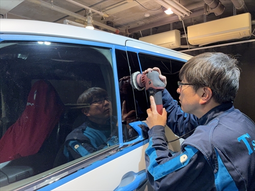 特殊な研磨技術を使って、1層目のベースコートをクリアー補充していきます。