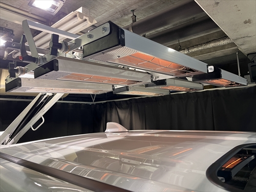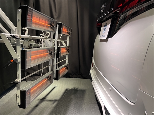 コーティング施工後はヒーターを使って1パネル毎温度管理しながら乾燥処理をしていきます。