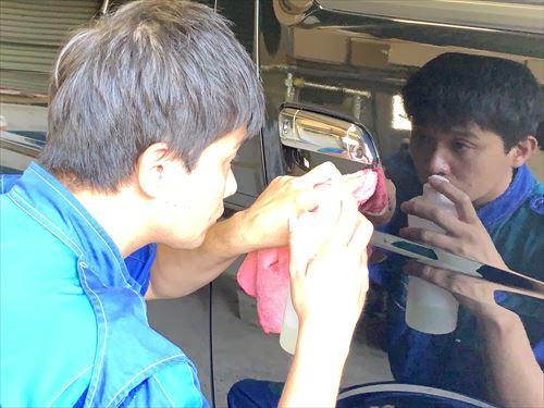 まずはドアノブからラッピング施工開始です(‘ω’)ノ